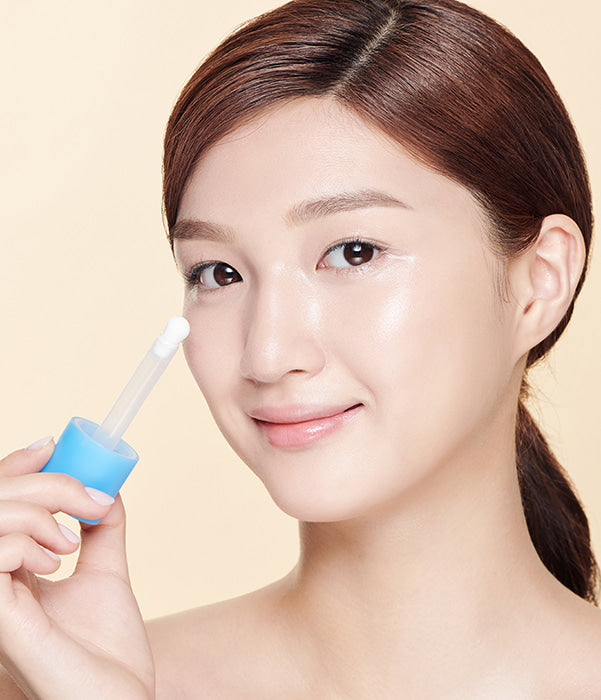 With the middle finger and ring finger, evenly apply in order of front area of the eyes-eyelids-skin above the eyebrows in a circular motion (repeat 3 times).